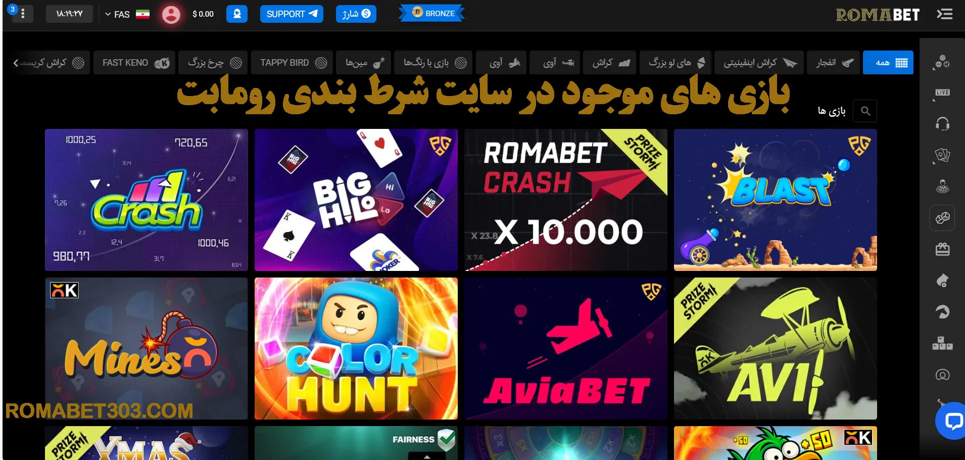 چه تازه کار باشید چه حرفه ای انفجار جایی ست که می توانید با مدیریت سرمایه و تصمیم گیری سریع سود بالایی به دست آورید. روما بت همچنین بخشی از پشتیبانی خود را به کاربران انفجار اختصاص داده تا مشکلات این بخش با اولویت بیشتری بررسی شود.